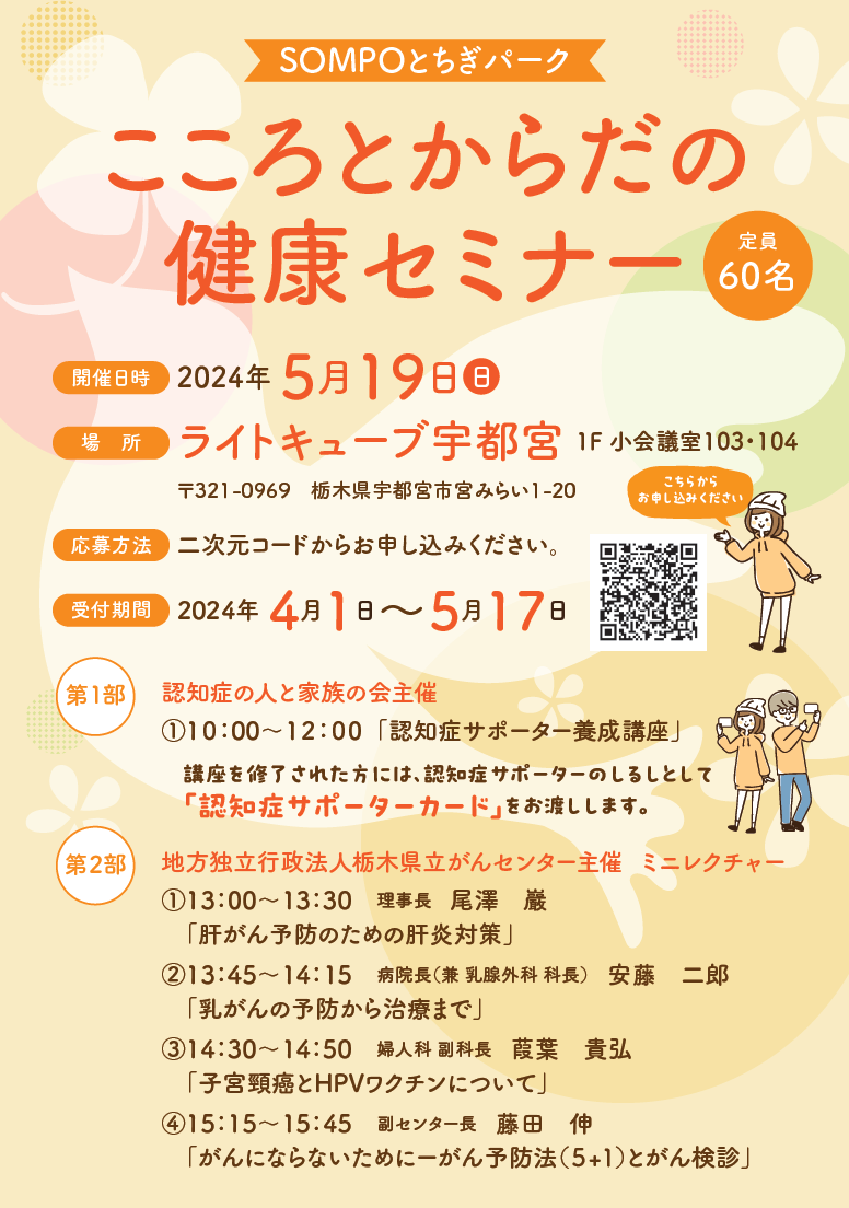 5月19日(日)SOMPOとちぎパーク「こころとからだの健康セミナー」にて、ミニレクチャーを開催します!