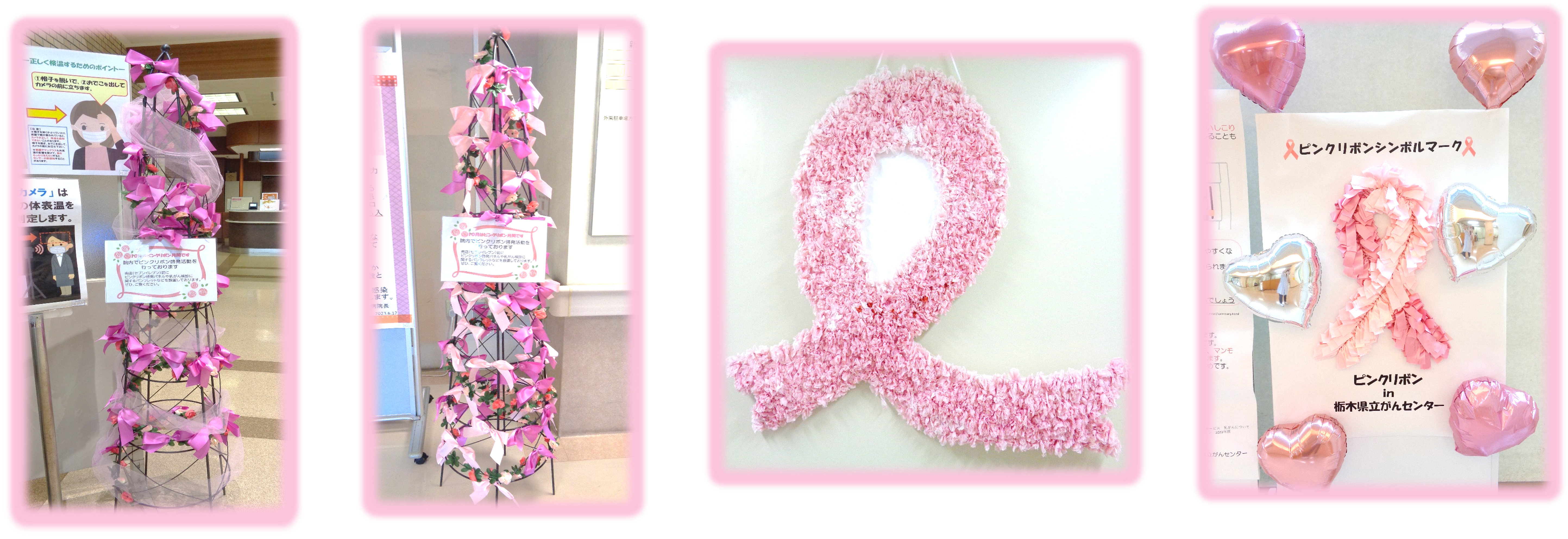 ピンクリボンツリーやオブジェの展示
